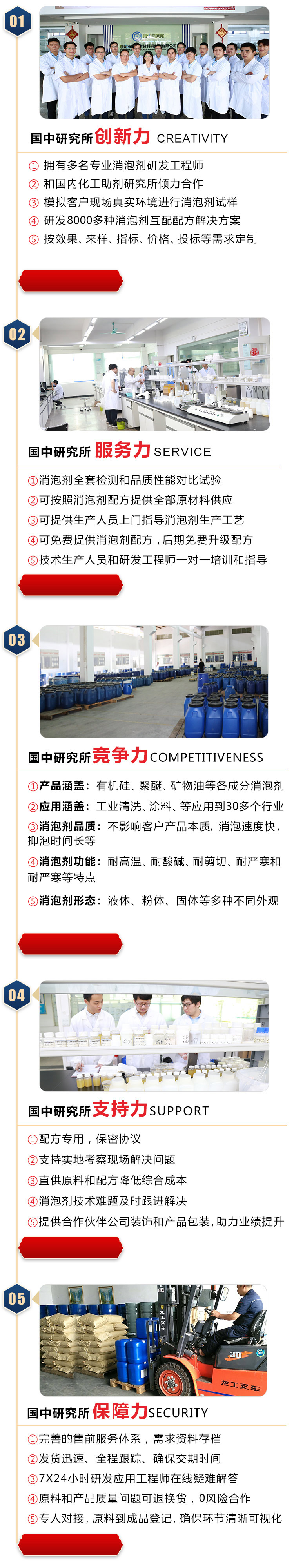 • 每批次檢測(cè)產(chǎn)品含量和粘稠度等,確保消泡劑達(dá)到標(biāo)準(zhǔn)